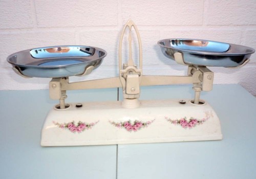 Und hier zwei verschiedene Balkenwaagen mit einzelnen Röschen